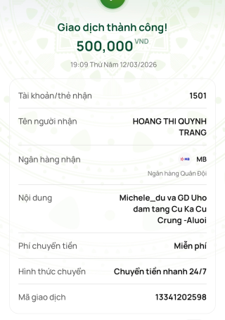 Michele_du và Gia đình ủng hộ đám tang Cụ Kả Cu Crung 500,000₫.