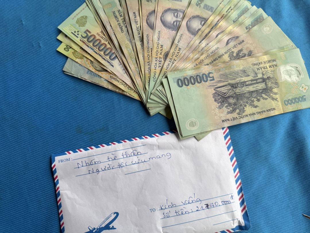 Bạch Liên và chị Trang ủng hộ đám tang của Cụ Kả Cu Crung 500,000₫ (tiền đã chuyển gửi trong quỹ NTCM).
