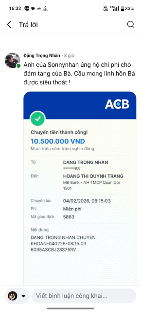 Trích dẫn của: trieuandaikin vào 10-06-2019 16:35:41em có ck 300k, ủng hộ quán cơm 2k ạ vào tài khoản chị Lá thu vàng ạ. Mã FT19161129748208.Quỹ quán cơm 2000đ Saigon đã nhận 300,000đ của Trieuandaikin. Chân thàn cảm ơn bạn.