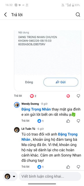 em có ck 300k, ủng hộ quán cơm 2k ạ vào tài khoản chị Lá thu vàng ạ. Mã FT19161129748208.