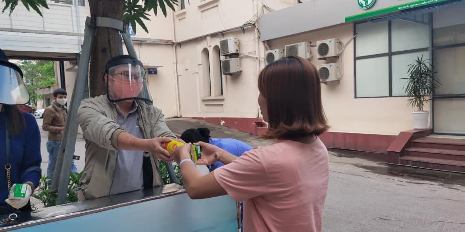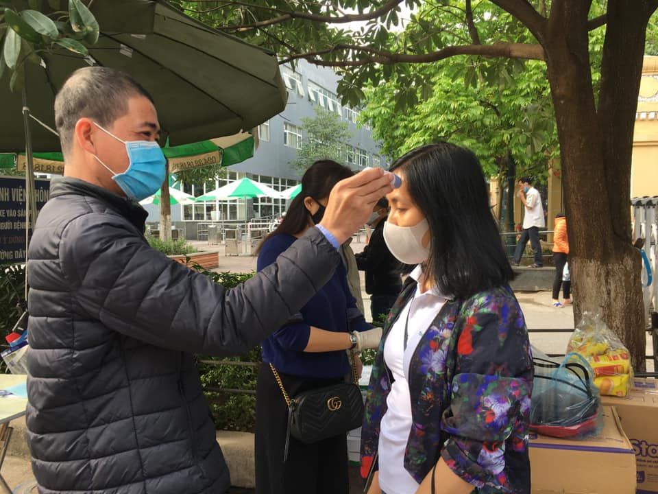 Do tình hình dịch bệnh hiện tại việc ra vào bệnh viện được kiểm soát rất nghiêm ngặt. Mỗi buổi phát chỉ được 3 người và phải qua cổng để bảo vệ đo thân nhiệt và đóng dấu cho phép ra vào bệnh viện.