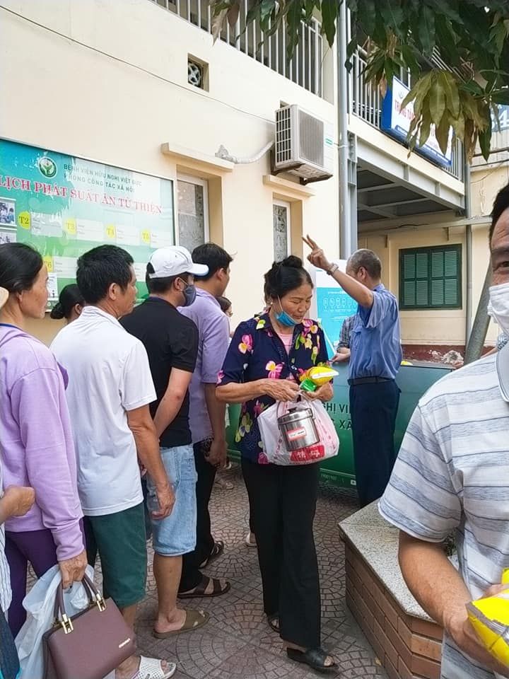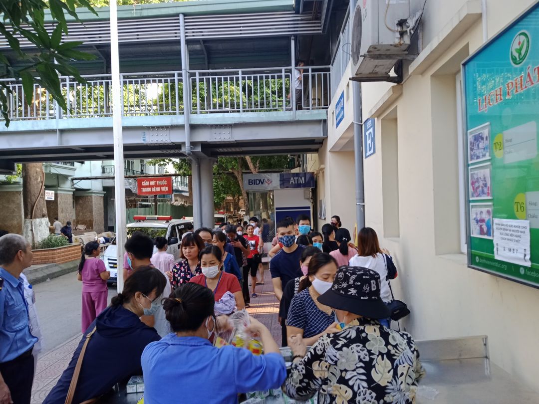 Do tình hình dịch bệnh hiện tại việc ra vào bệnh viện được kiểm soát rất nghiêm ngặt. Mỗi buổi phát chỉ được 3 người và phải qua cổng để bảo vệ đo thân nhiệt và đóng dấu cho phép ra vào bệnh viện.