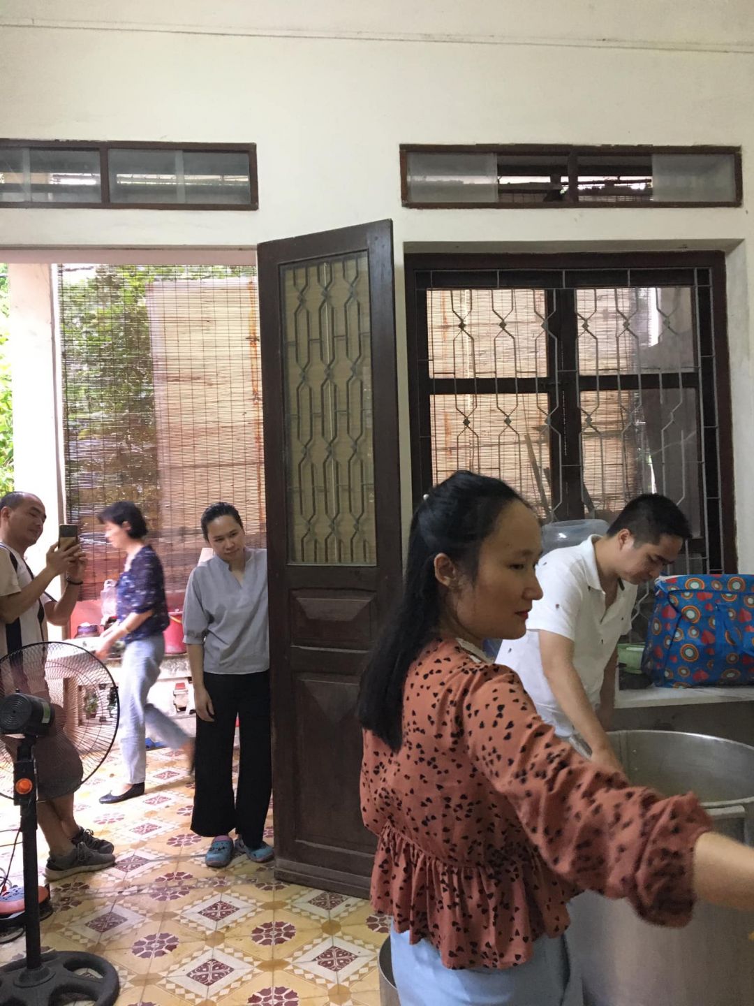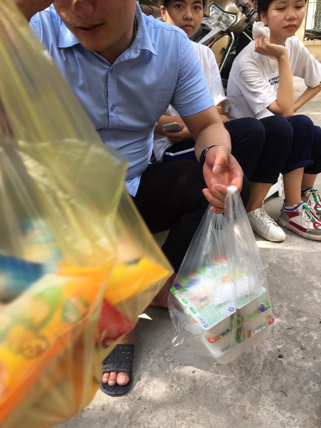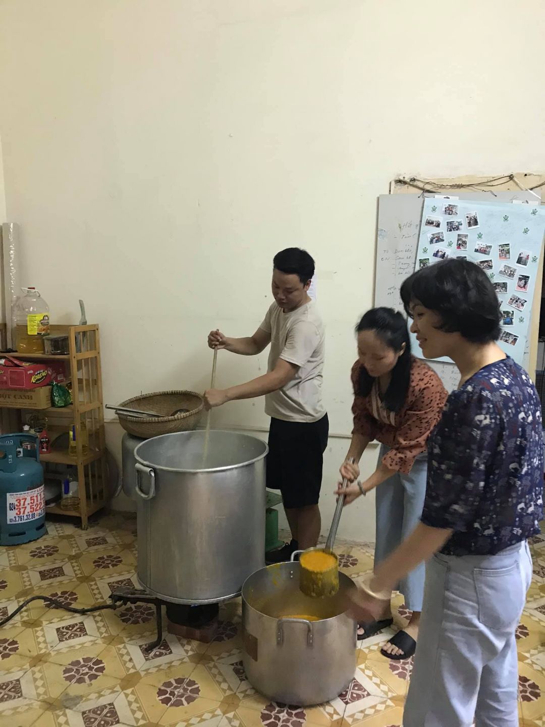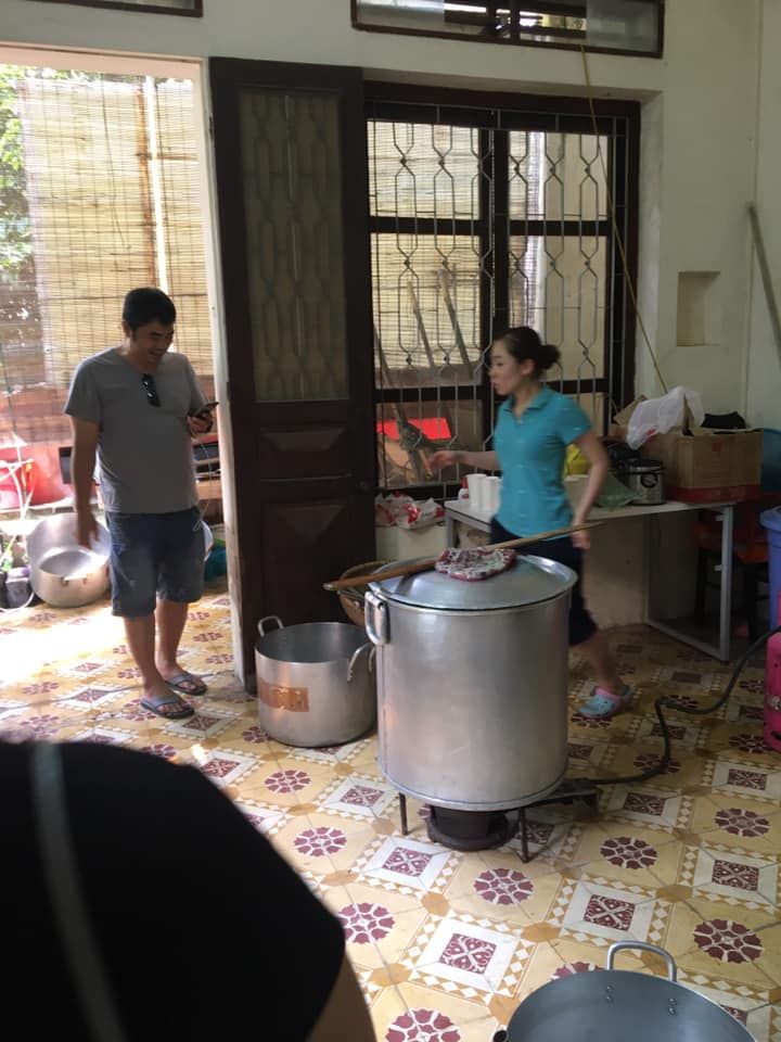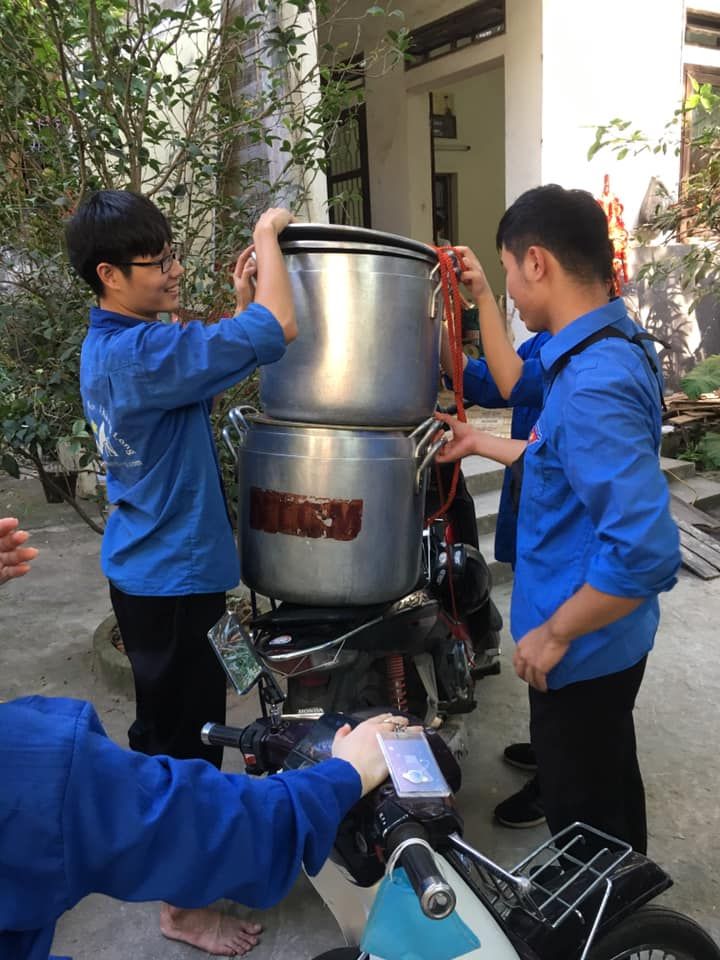 - 15h15: Múc cháo ra 6 nồi nhỏ chờ xe đến chở đi viện.