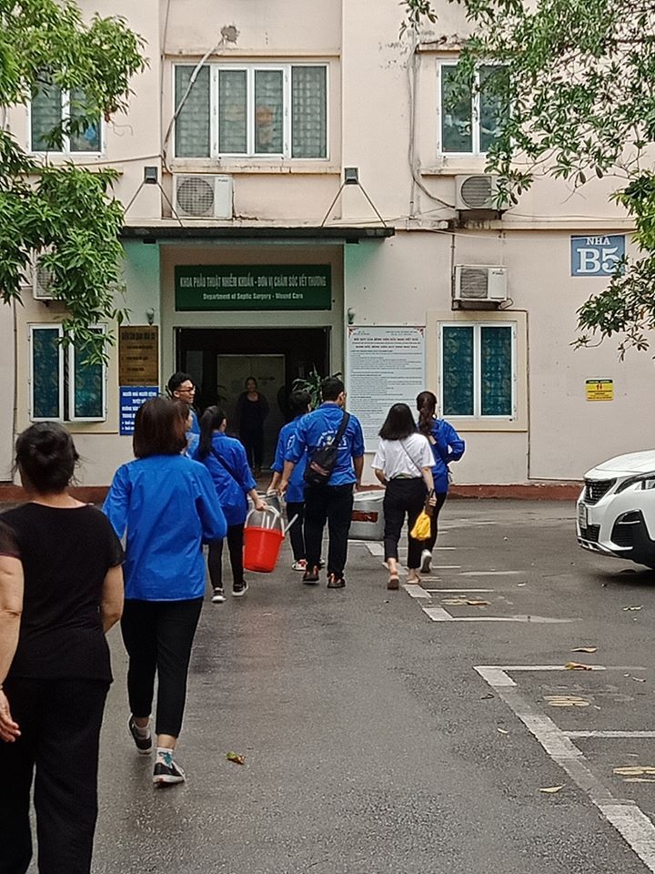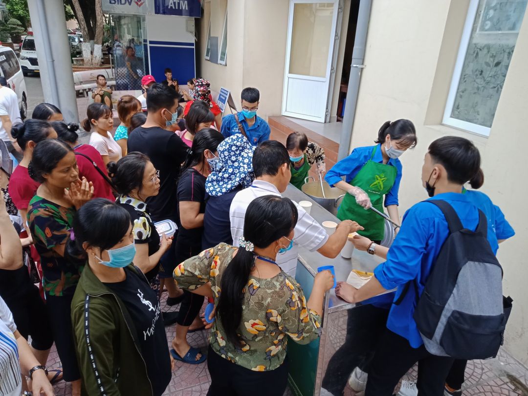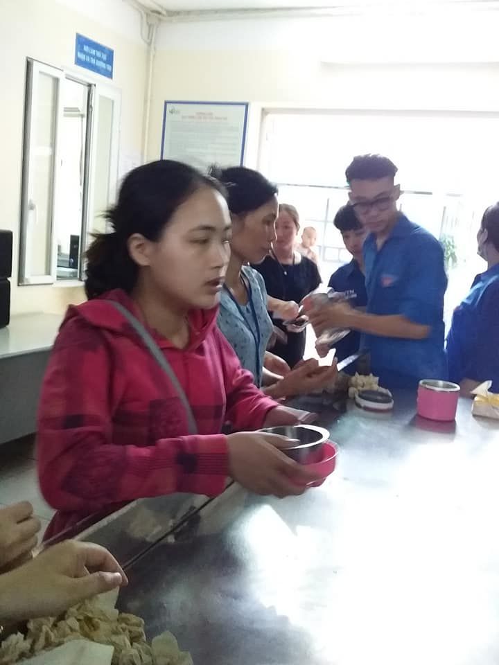 Cần 3-4 người, có 2-3 bạn đi các khoa phòng mời bệnh nhân xuống nhận cháo vì nhiều bệnh nhân không biết. Cả nhà lưu ý chi tiết nhỏ này với nhé.