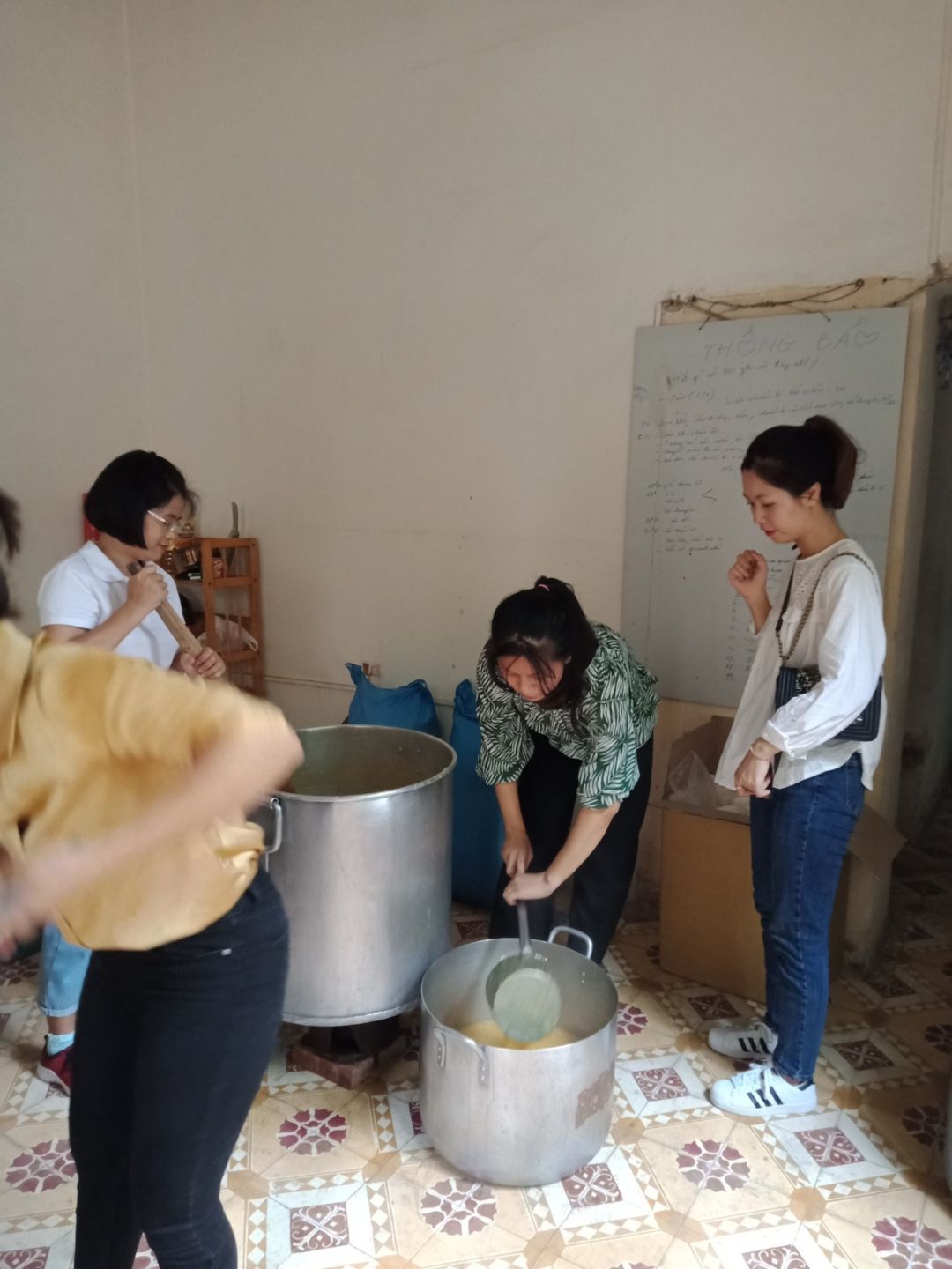 - 15h30: Cọ 2 nồi to, cọ rửa sàn bếp và quét dọn sân.