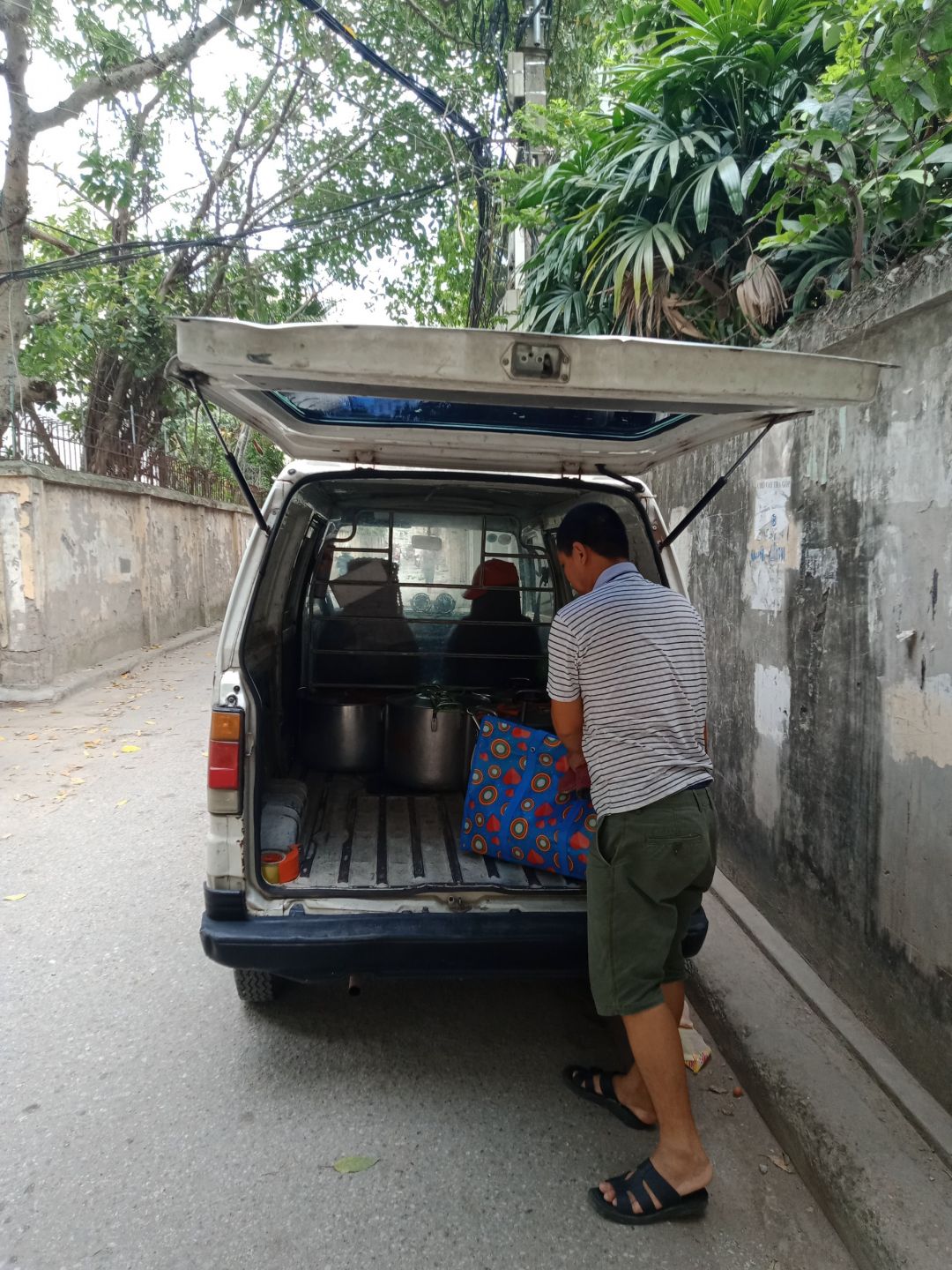 - 15h15: Múc cháo ra 6 nồi nhỏ chờ xe đến chở đi viện.