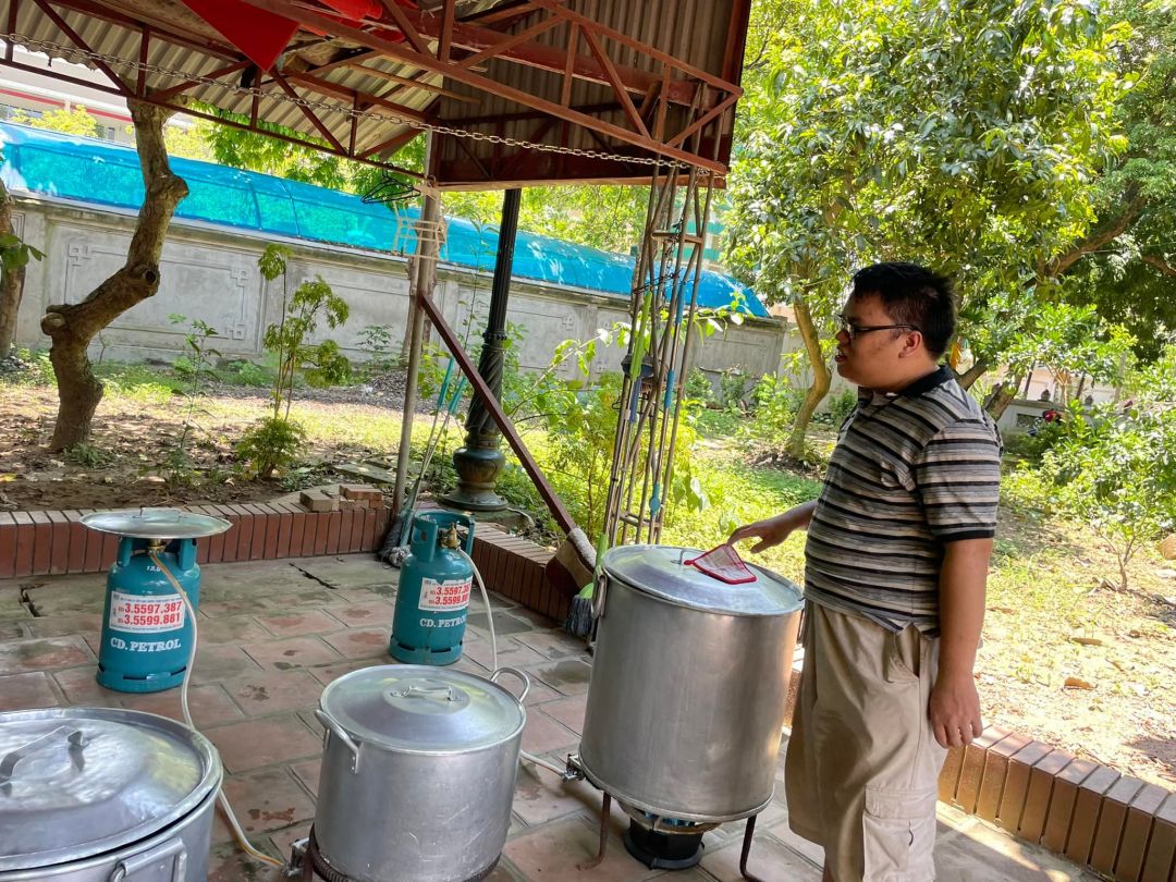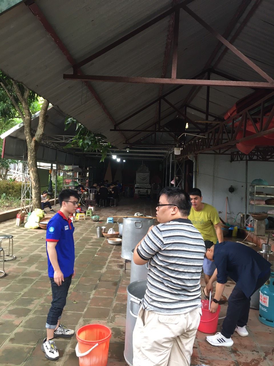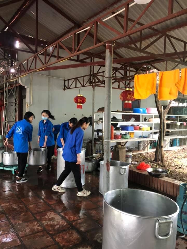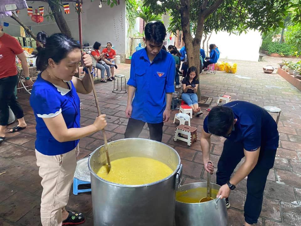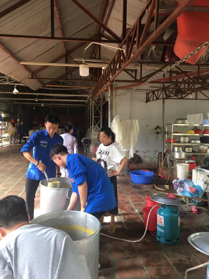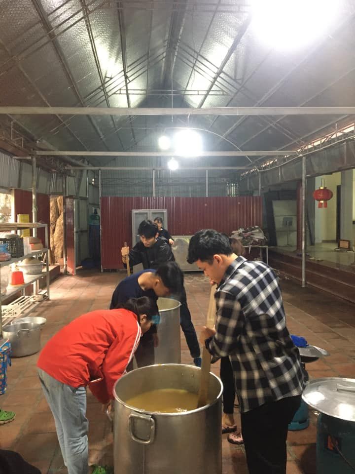 - Cháo chuyển về cùng soup tại chùa Phụng Lộc, địa điểm nấu rất rộng rãi và đông vui.
