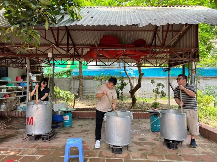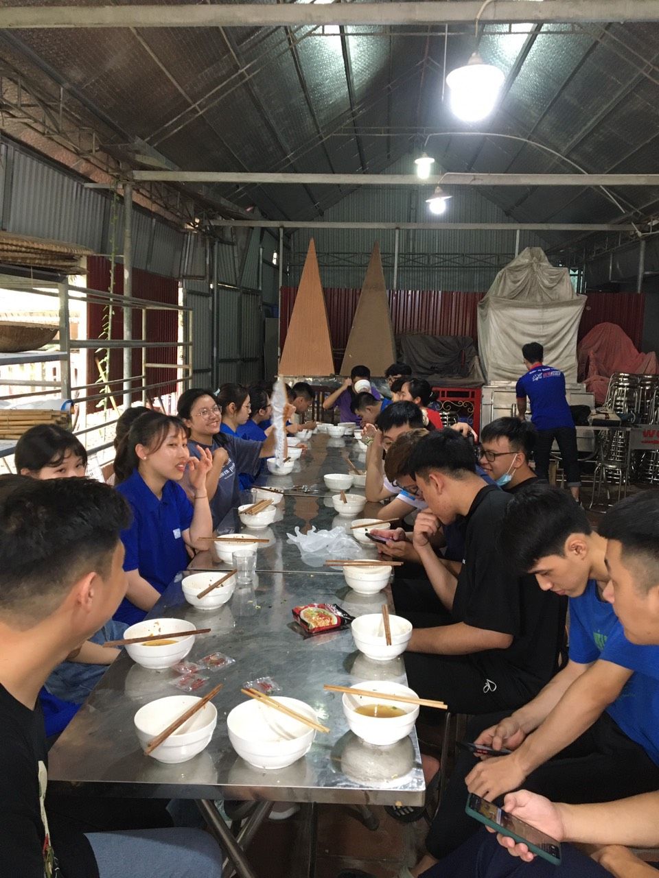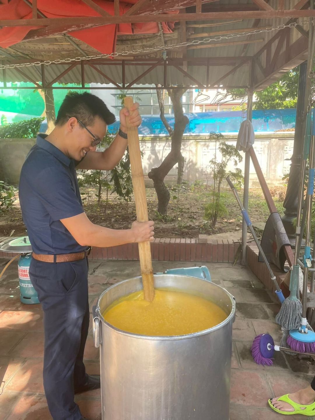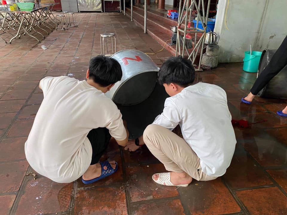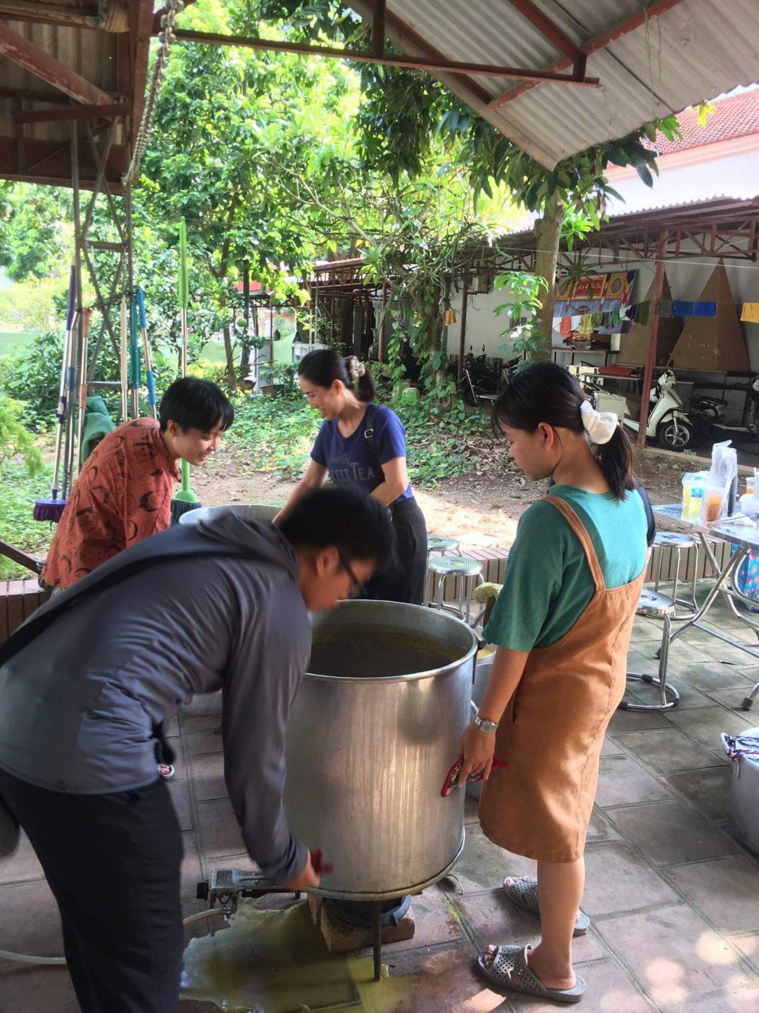 - Cháo chuyển về cùng soup tại chùa Phụng Lộc, địa điểm nấu rất rộng rãi và đông vui.