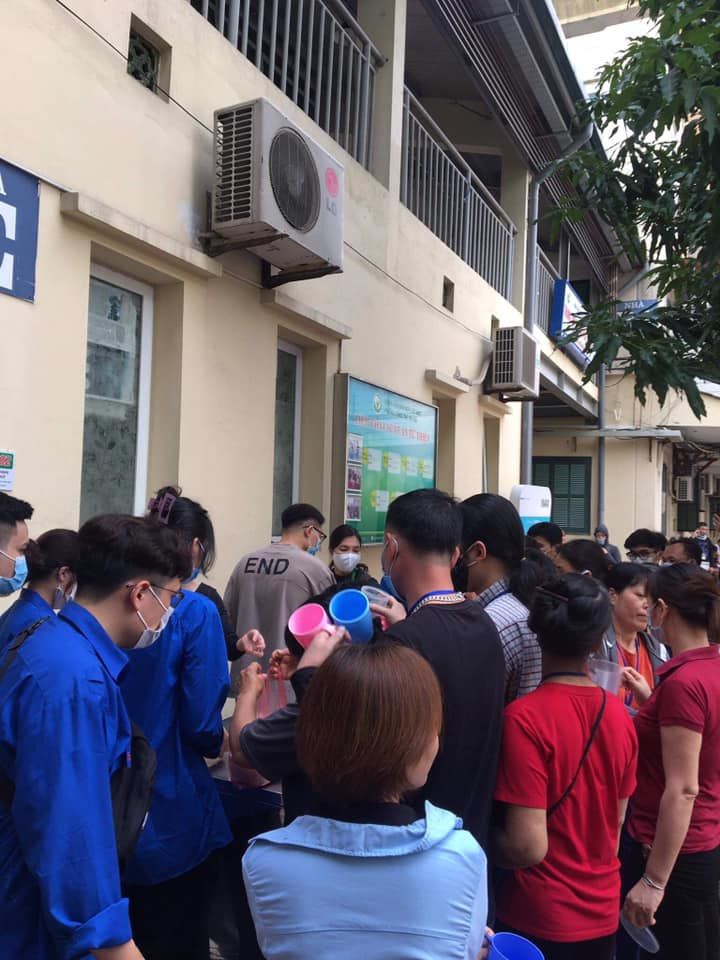 Bắt đầu phát cháo được một lúc thì hết veo 4 nồi, còn 1 nồi do hết cốc nên chậm xíu. Các bạn sinh viên tình nguyện trường Đại học Thăng Long hỗ trợ nhiệt tình nên cốc được mua bổ sung.
