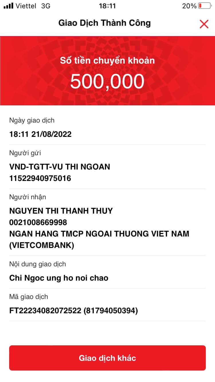 + Chị Ngọc ủng hộ: 500.000 đ