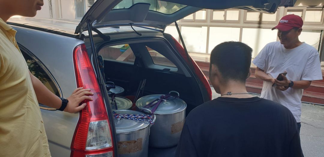 Tuần này nồi cháo được ưu ái, người vận chuyển kiêm luôn người nấu cháo và chở cháo đến bệnh viện.