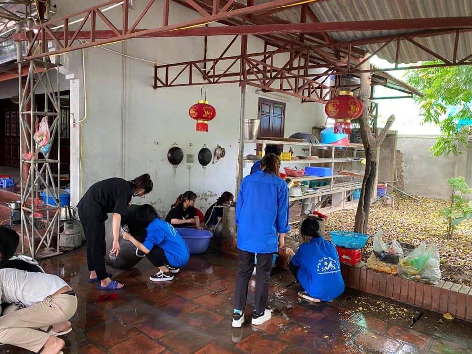 - Thứ 7 với cơn mưa rào đầu hạ  không ảnh hưởng đến buổi nấu và phát cháo.