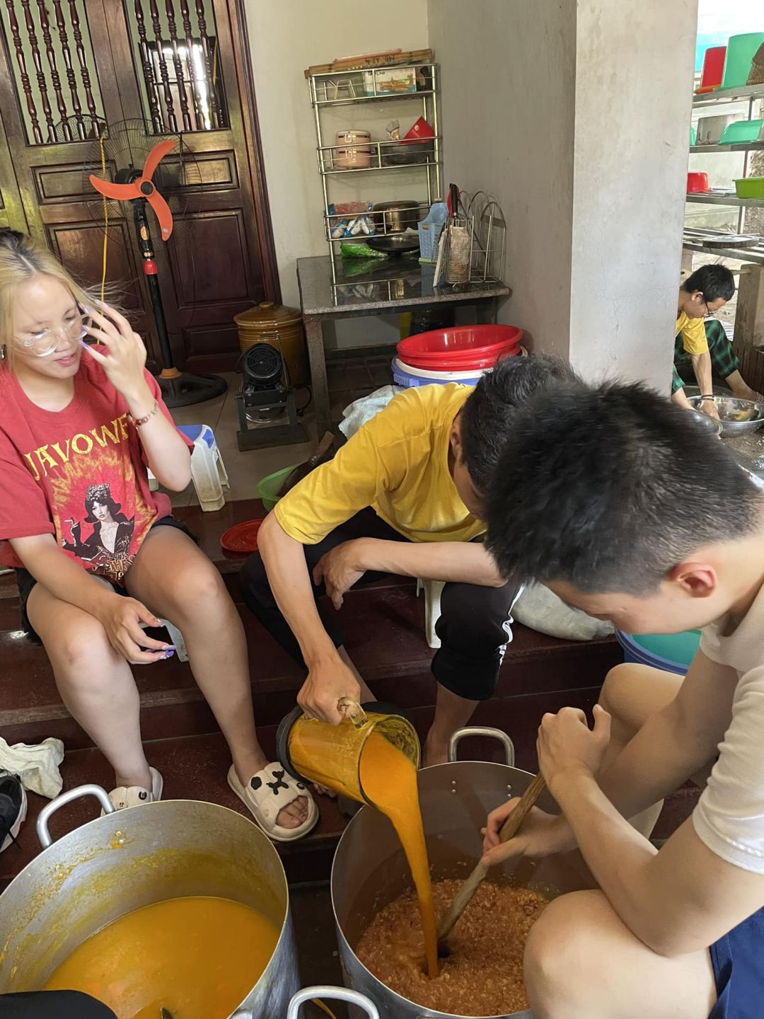 Tuần này xanh màu áo tình nguyện các em sinh viên trường Đại học Thăng Long và hội đồng hương Thái Bình với chị Ngoan nấu cháo và phát cháo.