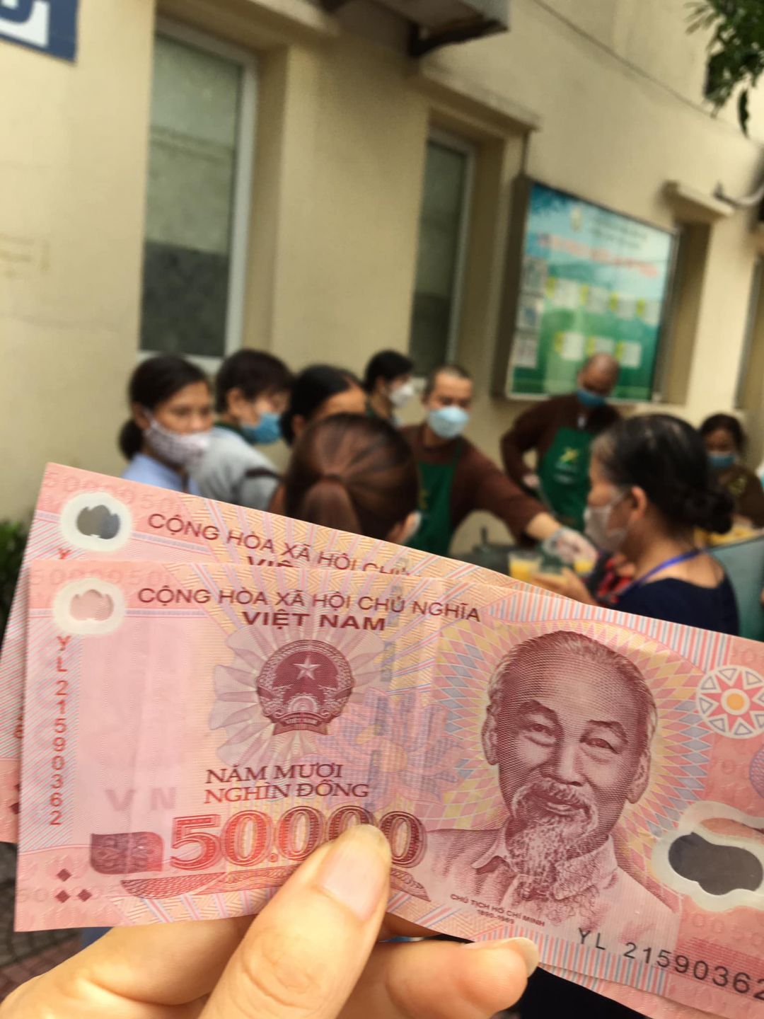 Chị Van Thi Bich Hang ủng hộ 2000 cốc đựng cháo và 2 bịch giấy ăn.